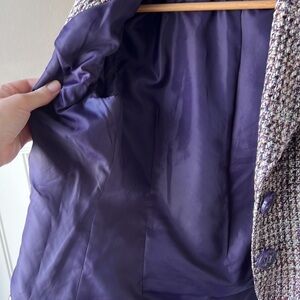 LAURA PETITES Purple Bouclé Wool Blend Knit Two Button Closure Blazer Size 2