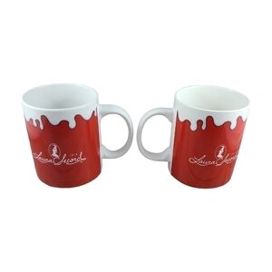 LAURA SECORD Red Ceramic Mugs Brands Unlimited Pair Set of 2 Coffee Tea Cups