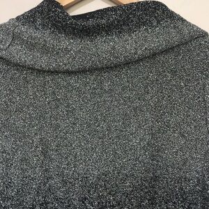 LAURA black silver metallic shimmery cowl neck long sleeve dressy shirt Small