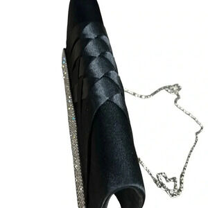 LAURA purse , women little black clutch.Beads,shiny, weave,woven,silver chain