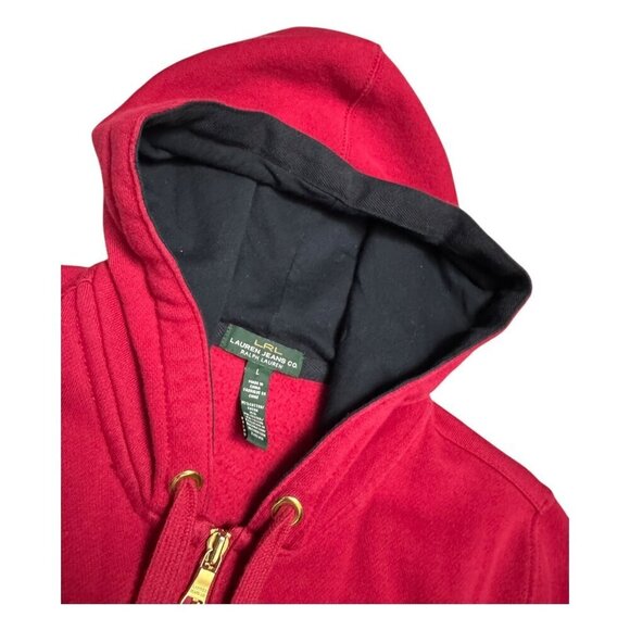 LAUREN RALPH LAUREN Designer Casual Full Zip Red Hoodie Sweatshirt Mens Large