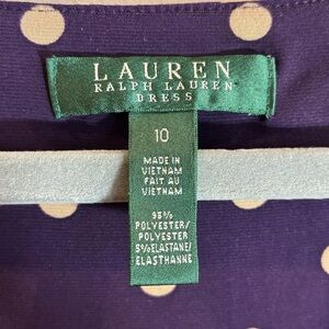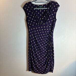 LAUREN RALPH LAUREN Sz 10 Purple Beige Polka Dot Above the Knee Ruched Dress