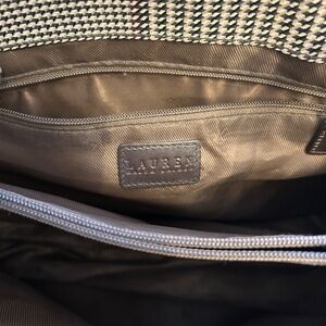 LAUREN RALPH LAUREN Tan & Cream Houndstooth Tote Purse Handbag Shoulder Bag. Condition is "Pre-owned".