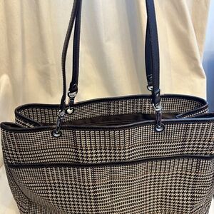 😍🌻 - LAUREN RALPH LAUREN Tan & Cream Houndstooth Tote Purse Handbag Shoulder …