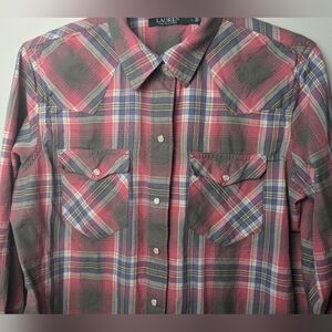 LAUREN RALPH LAUREN Women Blouse Style Western Size Large 100% Cotton