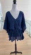 Lauren Ralph Lauren chevron pattern alternating stripes of royal blue and navy blue. V Neck and drawstring waist for a customized fit. Butterfly sleeves. 100% polyester, this fabric is on the sheer side. Tag states dry clean only, however I washed on delicate cycle and hung to dry. You could style this with jeans or a skirt, or use it as a short swimsuit coverup on your next vacation.