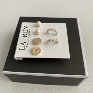 LAUREN Ralph Lauren Set of 3 Earrings Pearl Loops