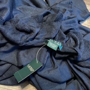 LAUREN Ralph Lauren Ruffle Ruana Navy One Size