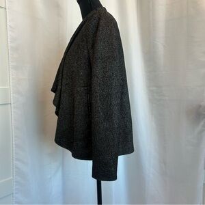 Lauren Vidal black metallic gold open front draped blazer Sz S