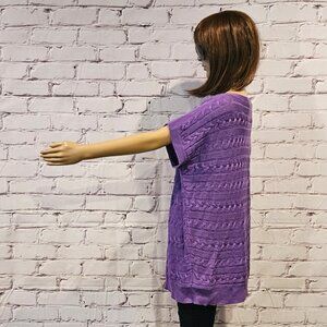 LAUREN by RALPH LAUREN - Classic cable knit short sleeve purple tunic sweater