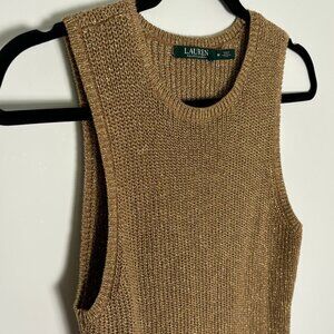 LAUREN by Ralph Lauren Shimmery Gold Knit Tunic Top