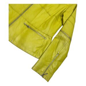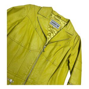 Elevate your wardrobe with the timeless elegance of the Laurence Roy Vintage Leather Jacket. This luxurious bomber jacket, designed for women, is a versatile piece that seamlessly transitions from day to night. The solid green leather outer shell, paired with a classic mid-length cut and long sleeves, offers a sleek look that's sure to turn heads.