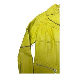 LAURENCE ROY Vintage LEATHER Luxury Neon Retro Bomber Jacket