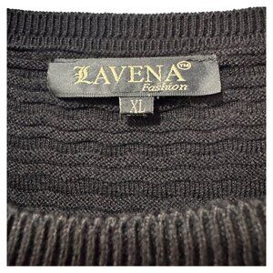 pit to pit 23" length 32" Wrap yourself in the cozy comfort of the LAVENA Ladies XL Fall Leaves Long Sleeve Sweater, a perfect blend of style and warmth for the chilly season. Crafted with a soft acrylic/viscose mix, this pullover ensures both durability and a gentle touch against your skin.In a classic black hue, this sweater features a tasteful fall leaves design, making it an ideal choice for both casual and semi-formal settings. The regular fit caters to a comfortable experience without compromising on elegance, ensuring you look effortlessly put together whenever you step out in this charming piece.