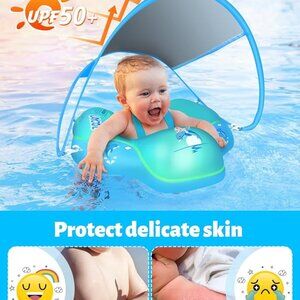 【Removable Canopy】The baby float for pool come with a breathable and removable UPF50+ sun canopy to protects baby’s skin away from sun,enjoying summer time anytime,anywhere