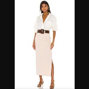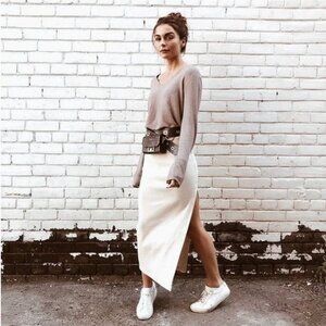 L'Academie Mia Knit Midi Maxi Skirt in Cream with Side Slit Size Small