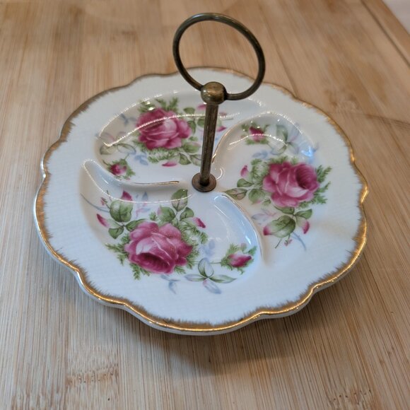 L'Amour China Gold and Floral Hand Painted Jewelry Dish
