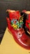 Vibrant red boots with colorful floral details. Perfect for a bold fashion statement.