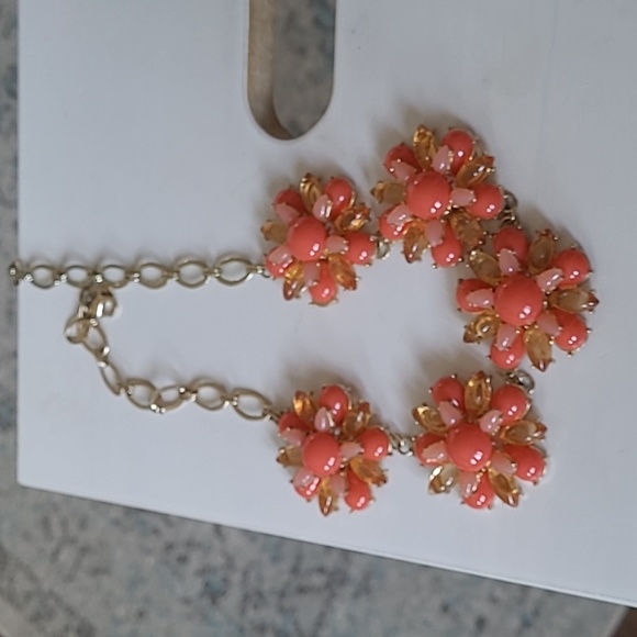 Coral toned floral necklace. Earrings also available. Adjustable length. Rarely worn.