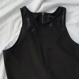 A high mesh neck in the front. A zipper in the back to easily get it on.