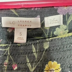 LC Lauren Conrad Blouse Greyish Black Floral Square Neck Flowy Size Small