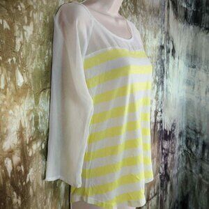 LC Lauren Conrad Women's Striped Bow Tee 3/4 Sleeves Yellow & White Shirt