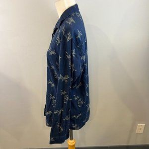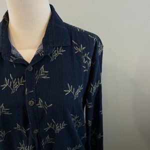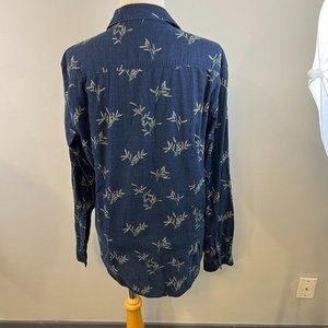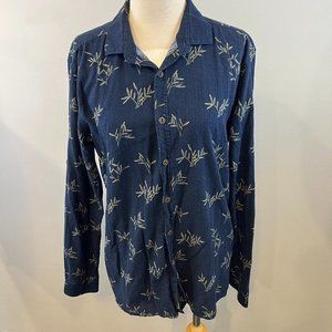 LC WAIKIKI Blue Green Palm Motif Long Sleeve Button Down Shirt (M)