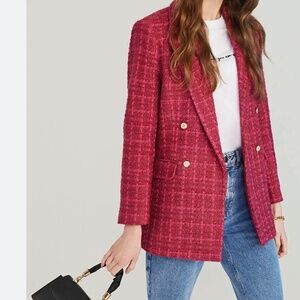 LC Waikiki Vision Blazer Tweed Jacket Chanel vibe Double breasted Pink Sz S