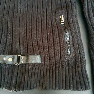 LCR 04s Black Full Zip Wool Blend Sweater Detachable Collar Buckle Detail