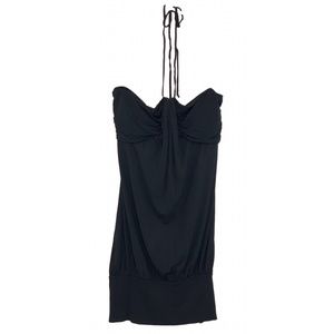 Made in Canada 🇨🇦 Short bubble style dress with halter laces from Le Chateau in black, medium. Classy but not stuffy, comfortable without losing chic style.