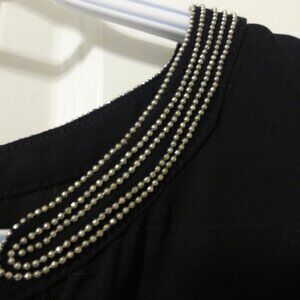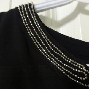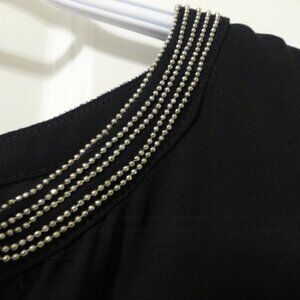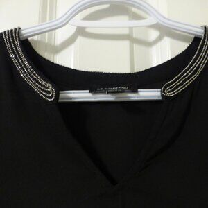 LE CHATEAU black flutter sleeve chiffon top with silver shimmery beads