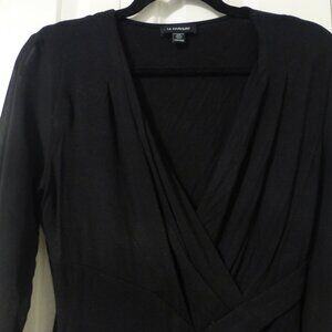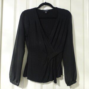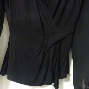 LE CHATEAU black low cut long sleeve top with semi-sheer sleeves
