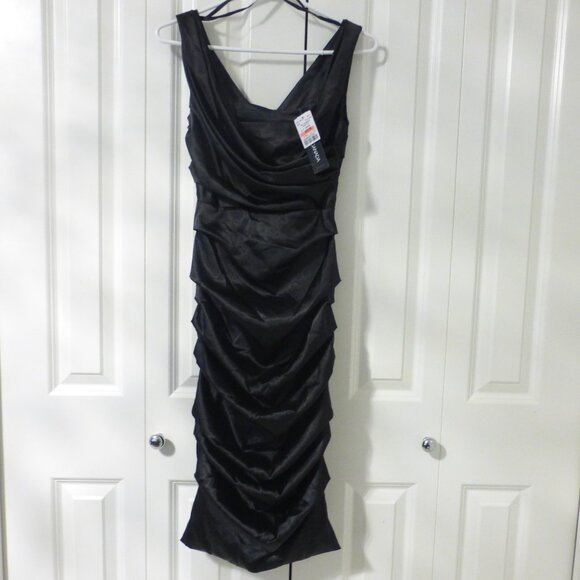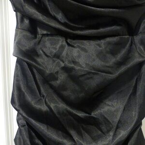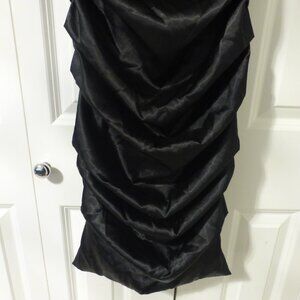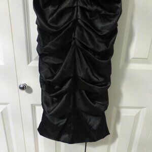 LE CHATEAU black silky satin ruched cocktail party midi dress