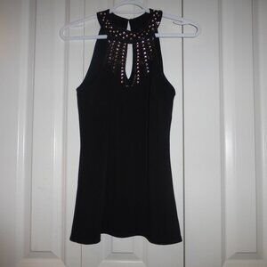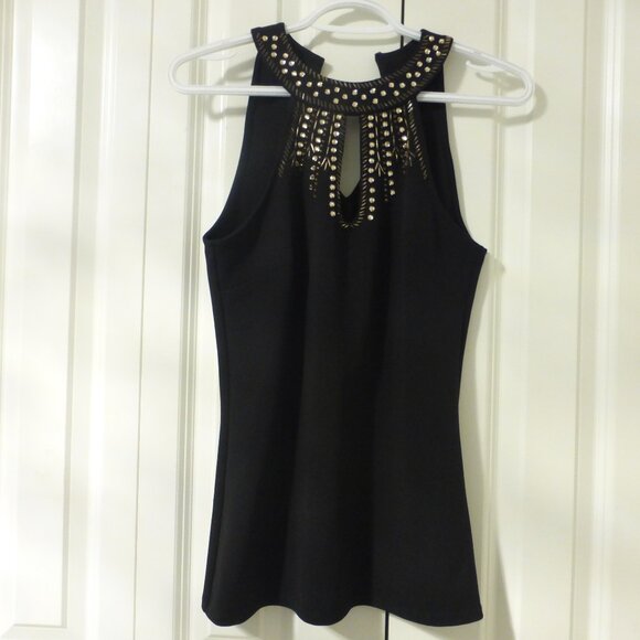 LE CHATEAU black sleeveless top with keyhole neckline and gold bead accents