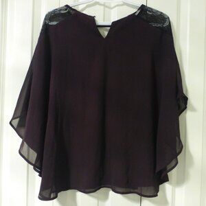 LE CHATEAU burgundy flutter sleeve chiffon top