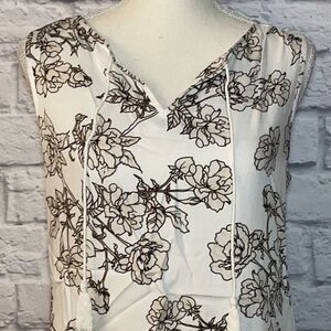 Style: Peasant inspired blouse with charming lace trim and gathered details. Split V-Neck with Tassel Ties, Sleeveless, Gathered, Semi-Fitted, Round Hem
