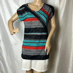 LE GRENIER Y2K,Multicolored,striped,lace,short sleeve top,retro,preppy,70 s vibe