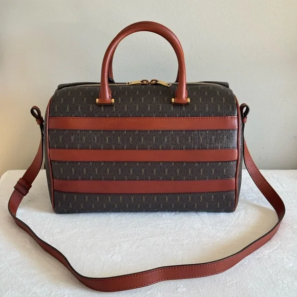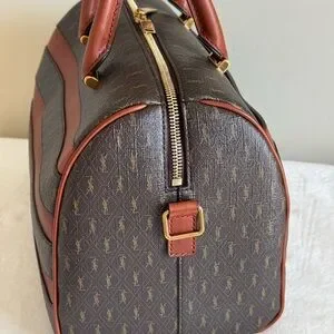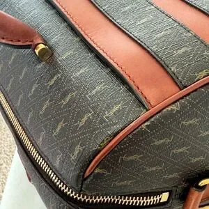 The pretty daffle Bag is in excellent used condition, it is spacious good for travelling and everyday bag. Zippers are working well, handles are in good condition with minor scratch not visible till scanned closely, Interior is clean, corners free from rubs, leather still vibrant and no holes, adjustable long strap still in very good condition, no foul smell.