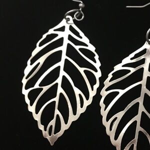 LEAF Earrings Silver Laser Cut Lightweight Silver Tone Drop