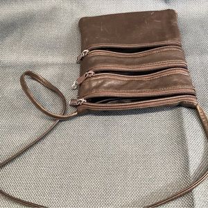 Brown, real leather, sommes signs of wear but very good condition (see pictures), no brand Size: 6 x 7 inches #D