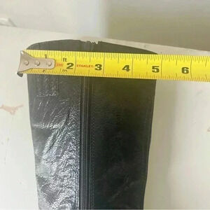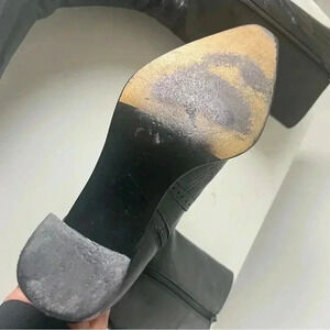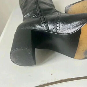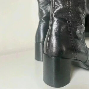 LEATHER BELOW KNEE BLACK HEELED BOOTS ZIPPER CLOSURE BLOCK HEELS SIZE 36