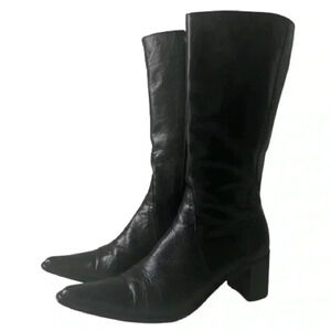 LEATHER KNEE BOOTS ZIPPER CLOSURE BLOCK HEELS POINTY TOE SIZE 36