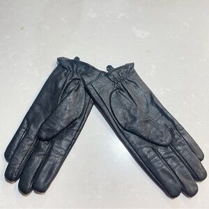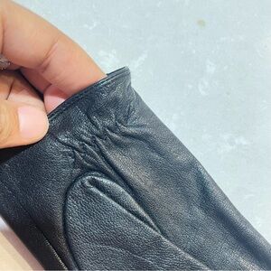 LEATHER BLACK GLOVES WITH BOW ONE SIZE SOFT LEATHER