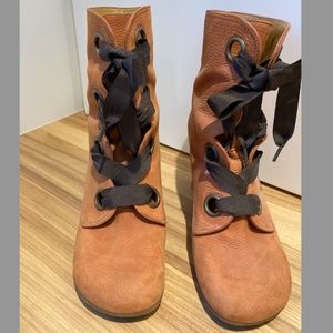 LEATHER BOOT WITH RIBBON LACES