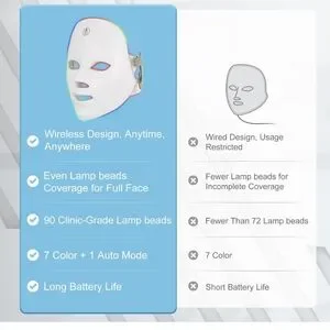 7-1 Customizable Modes for Personalized Care: Tailor your skincare to your specific needs with our face mask's seven distinct light modes. After the eighth click, the colors will cycle automatically