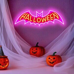 LED Bat Neon Sign Light with Dimmer and Chain for Halloween Bar Party Decor