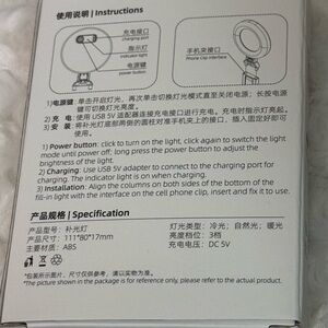 Compact LED ring light with adjustable brightness. Features a convenient phone holder for easy use.