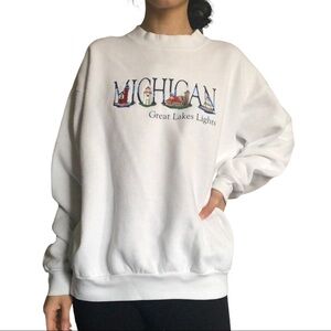 ✨Michigan- Great Lakes lights tourist Crewneck white sweatshirt