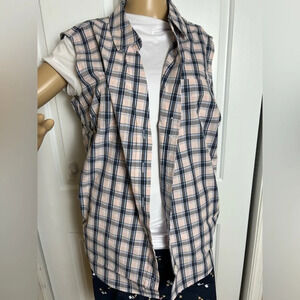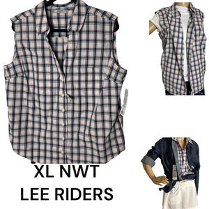 LEE NWT sleeveless plaid shirt L & XL Boxy ,button front,festival,country vibe