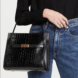 Editors’ favorite: Our Lee Radziwill Small Double Bag contrasts structure and softness, and a mix of materials. Composed of layers that unfold like the collar of a trench coat, it can be worn opened, semi-buttoned or fully closed. Beautifully crafted in croc-embossed Italian leather and suede, with signature lock-and-key hardware. The collection is named for Lee Radziwill, a woman Tory always admired — she was fearlessly unique.